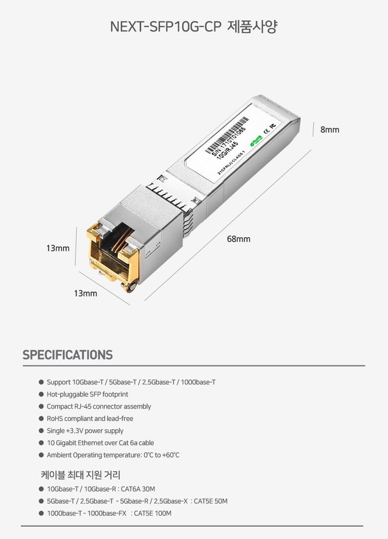 이지넷유비쿼터스 NEXT-SFP10G-CP SFP+ 10G GBIC SFP