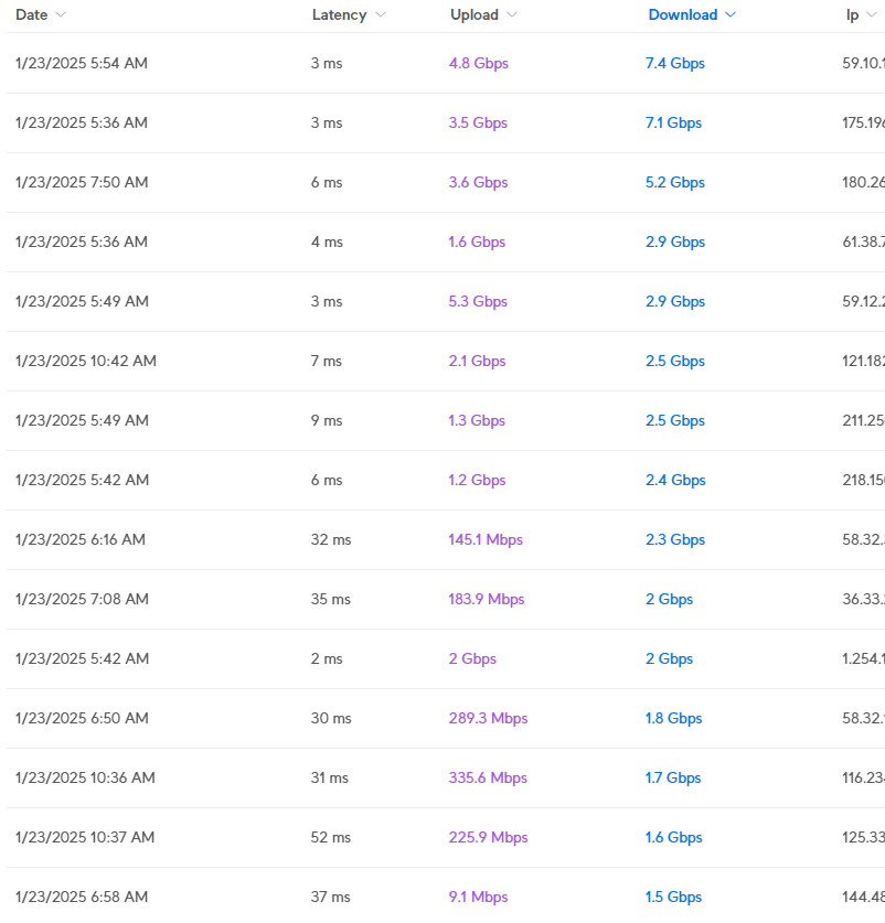 Wifiman 스피드테스트 건수가 하루만에 2,200건을 돌파하네요. 작성자 정보 Keiminem쪽지보내기 메일보내기 자기소개 아이디로 검색 전체게시물쪽지보내기 메일보내기 자기소개 아이디로 검색 전체게시물 작성 작성일 2025.01.23 11:37 컨텐츠 정보 1,018 조회 본문 지도의 그려지는 분포도는 최근 1,000건을 기준으로 찍히는군요 모니터링해본바로는 동북아시아를 아울러서 러시아 몽골 중국 일본 한국 홍콩 정도가 사용합니다. 의외로 중국 , 일본 인터넷속도가 겁나빠르다는거. 한국에서 테스트한것중에 1Gbps넘는건 5건도 안됩니다. 한국이 인터넷속도떄문에 IT강국이니 뭐니했었는데 강국맞나요? 0 추천 0 비추천 SNS 공유 태그 #지도, #동북아시아, #러시아, #몽골, #중국, #일본, #한국, #홍콩, #인터넷속도, #IT강국 관련자료 이전 문라이트 디제이맥스 테스트영상 ( 소리 미포함 ) 작성일 2025.01.26 23:15 다음 토폴로지가 조금 지저분해보여서 .. 작성일 2025.01.19 22:00 댓글 0개 등록된 댓글이 없습니다. 로그인한 회원만 댓글 등록이 가능합니다. 목록