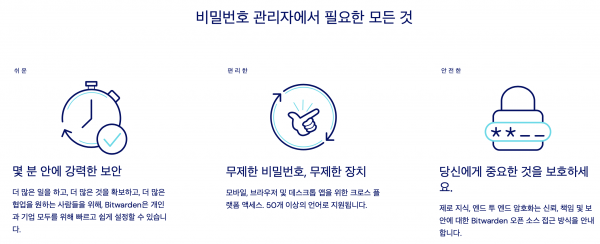 오픈 소스: Bitwarden은 오픈 소스 소프트웨어로, 누구나 코드를 검토하고 보안성을 확인할 수 있습니다.
