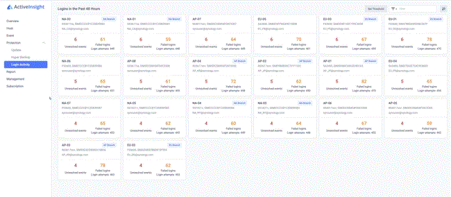 액티브 인사이트는 로그인 패턴이 의심스러운 경우 실시간 알림을 전송한다. 이를 통해 관리자는 관련된 계정과 IP 주소를 바로 검사하고 문제가 있는 연결에 대해 조치를 취할 수 있도록 한다. 장치별 백업 상태 개요를 통해 고객이 하이퍼 백업에서 실패했거나 완료되지 않은 백업 작업으로 인한 시놀로지 시스템에서의 데이터 보호 공백을 방지하며 영향을 받은 장치를 간편하게 검사할 수 있다.