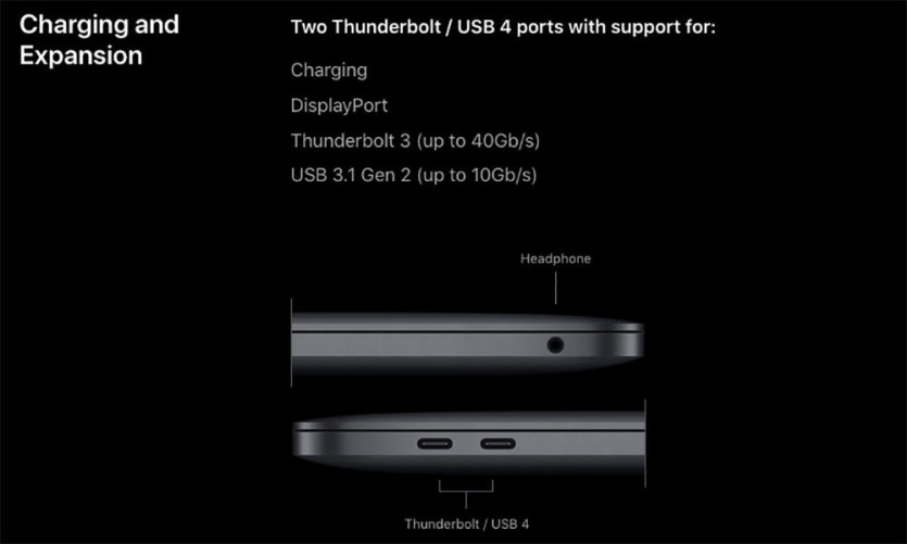 실제로 애플은 M1과 M2 맥북 기술 사양에서 썬더볼트 3을 포함해 ‘썬더볼트/USB 4’로 표기하면서 심지어 썬더볼트 4라고 부르지도 않는다. 더 고사양인 M1 프로나 M1 맥스 맥북 프로 모델의 경우, 애플은 포트를 썬더볼트 4로 채웠다. M1의 프로/맥스 버전이 M1이나 M2 맥북과는 달리 여러 개의 외부 화면을 지원하는 것도 이 때문이다.