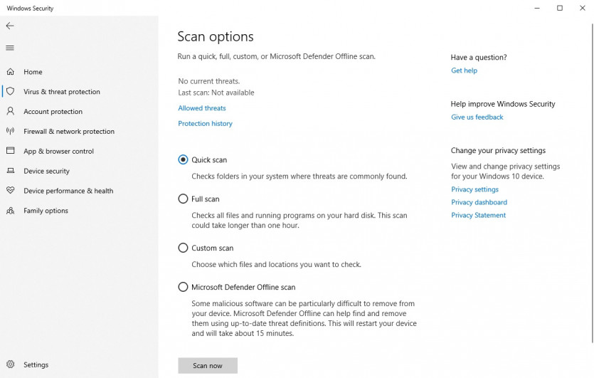 윈도우 시큐리티는 4가지 스캔 방식을 지원한다. ⓒ Lance Whitney/Foundry