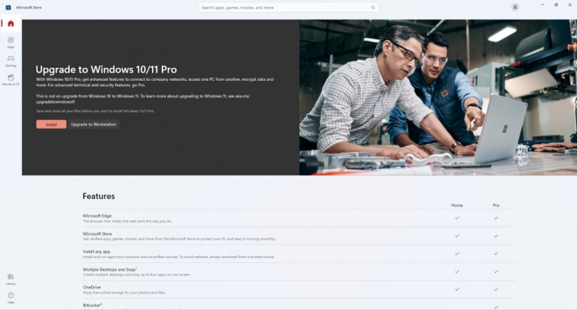 마이크로소프트 스토어 앱 내의 업그레이드 옵션 ⓒPCWorld