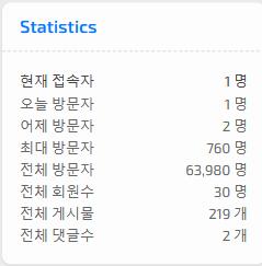 방문집계가 안되고 있습니다. 당연하게도 접속자는 NPM만 찍히는 중이죠