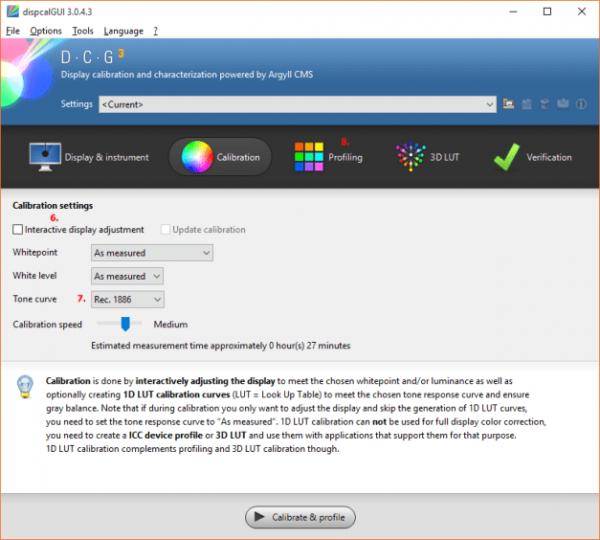 20) Put your meter on the middle of your screen properly, then click the ‘Calibrate and Profile’ button. Calibration may take a while, so go take a nap or walk the dog while the process takes place.