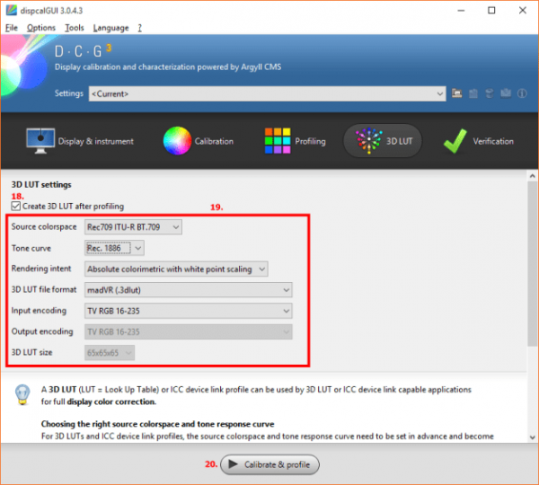18) In the ‘3D LUT’ section, ensure that the ‘Create 3D LUT after profiling’ check box is ticked.