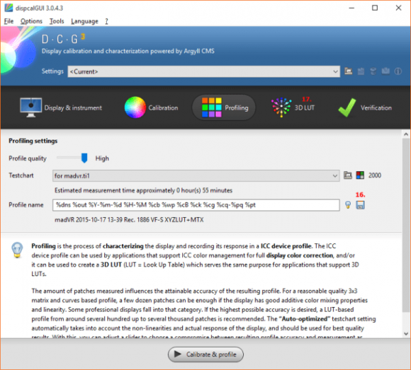 - choose ‘calibrate this display by using an external 3Dlut file’ if you want madVR to reprogram the lookup table in your GPU from an external file generated from CMS programs like the stand-alone yCMS or dispcalGUI + ArgyllCMS.