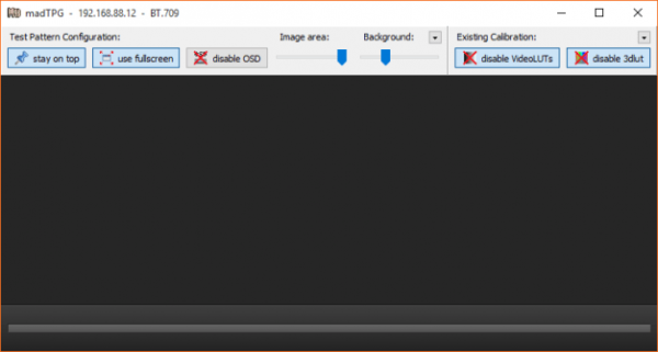 Go to ‘All Programs —> LAV Filters —> madVR Test Pattern Generator’ to start up the test chart display window. Enable the ‘stay on top’, ‘use full screen’, ‘disable VideoLUTs’ and ‘disable 3dlut’ options.