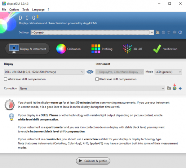 3) The ‘Correction’ pulldown menu should now show the chosen .ccss correction file. If your colorimeter isn’t a X-Rite i1 DisplayPro or a ColorMunki Display, or there are no .ccss file for your meter + display combo, manually set this option to ‘Auto’.