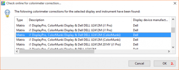 1) For those who has certain colorimeters as X-Rite i1 DisplayPro and ColorMunki Display, you can optionally download a .ccss correction file, by pressing the ‘globe’ button… (Internet access required.)