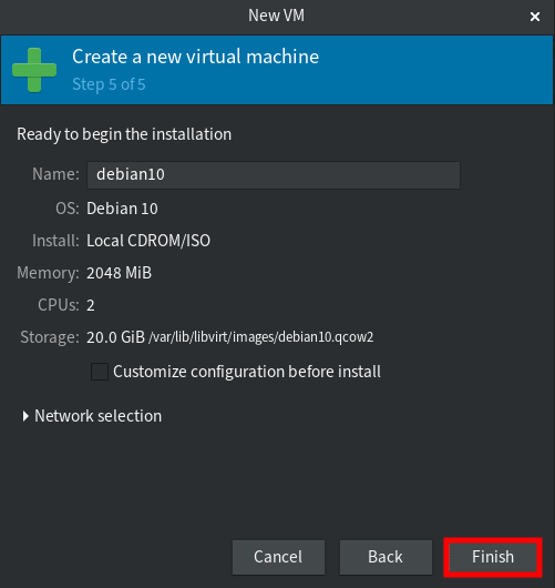 프로세스를 완료하려면 "마침" 버튼을 클릭하십시오. 그러면 새 가상 머신을 만들 준비가 된 것입니다.