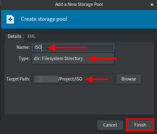 5. 그런 다음 "+" 버튼을 클릭하여 ISO 이미지 파일용 새 풀 저장소를 만듭니다. 모든 ISO 파일 운영 체제는 이 풀에서 사용할 수 있습니다.
