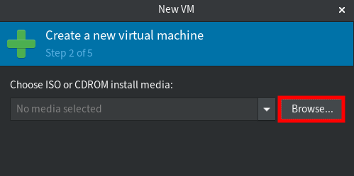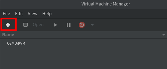 1. virt-manager 애플리케이션에서 "+" 버튼을 클릭하여 새 가상 머신을 생성합니다.