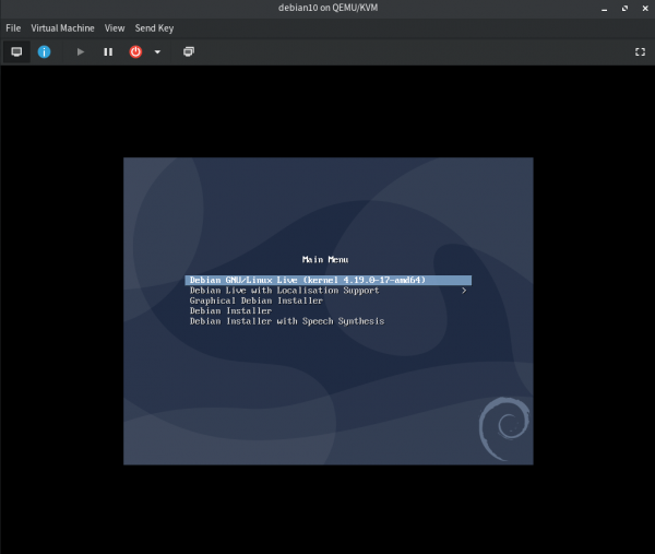 7. 이제 가상 머신이 QEMU/KVM 가상화와 함께 실행되고 있으며 os 설치를 계속할 수 있습니다.