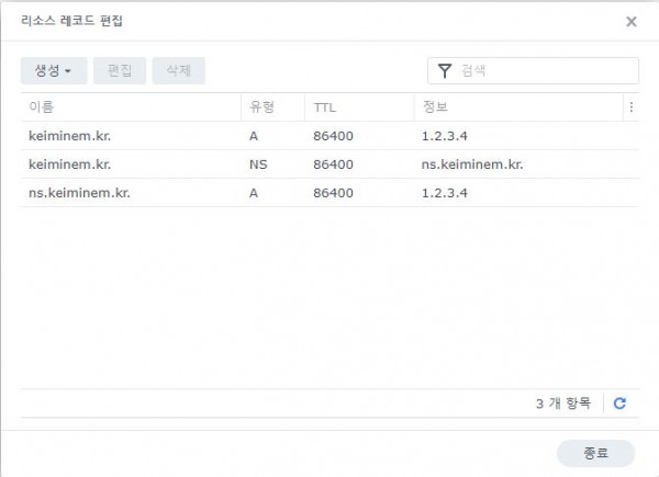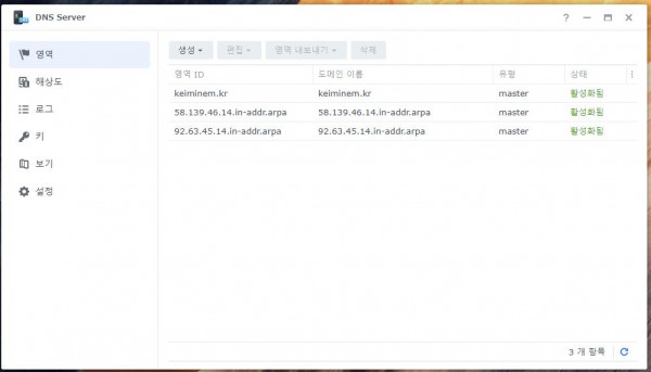 라고 설명해줄수있습니다. 여기까지만해도 keiminem.kr 이라는 주소의 도메인서버로서의 기능을 할수 있지만